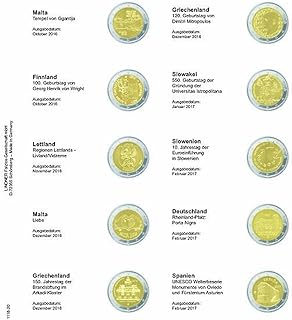 Lindner 1118-20 Vordruckblatt für 2 Euro-Gedenkmünzen: Malta, Oktober 2016 - Spanien, Februar 2017