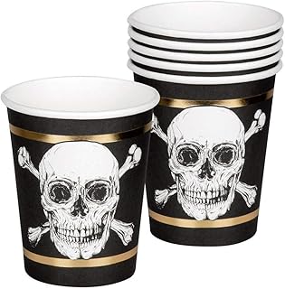 Boland 74112 - Partygeschirr Trinkbecher Pirat, 6 Stück, Fassungsvermögen 25 cl, umweltfreundliche Pappbecher, Einwegbecher, Totenkopf, Freibeuter, Mottoparty, Geburtstag, Überraschungsparty