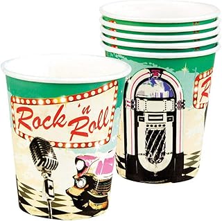 Boland 44857 - Partygeschirr Trinkbecher Rock´n Roll, 6 Stück, Fassungsvermögen 25 cl, 50er Jahre, umweltfreundliche Pappbecher, Einwegbecher, Mottoparty, Karneval