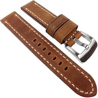 Bio-Kalb Ersatzband Uhrenarmband 18mm - 22mm | Kalbsleder braun, mit Kontrastnaht 30112, Stegbreite:22mm, Schließe:Silbern