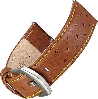 Echt Leder Ersatz Armband für Smartwatch und Uhren mit 20mm und 22mm Stegbreite, mit Quick-Release Funktion und Edelstahl Dornschließe (22mm, Braun+Gelb)