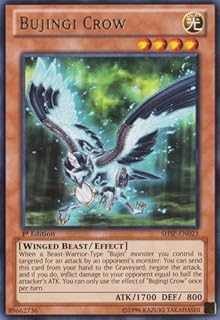 Buy latest YU-GI-OH! - Bujingi Crow (SHSP-EN023) - Shadow Specters - 1st Edition - Rare online at best prices at desertcart. FREE Delivery Across INDIA. EASY Returns & Exchange. Bujingi Corvo + Japanese database ID 10,754 + Japanese kana name ぶじんぎ-ヤタ + Japanese lore 自分フィールド上の「武神」と名のついた獣戦士族モンスターが相手モンスターの攻撃対象に選択された時、このカードを手札から墓地へ送って発動できる。 攻撃モンスターの攻撃を無効にし、そのモンスターの攻撃力の半分のダメージを相手ライフに与える。 「武神器-ヤタ」の効果は1ターンに1度しか使用できない。 + Japanese name 武神器-ヤタ + Korean database ID 10,754 + Korean lore