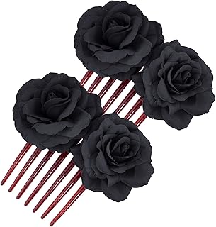 Rose Blume Seitenkamm Boho Handgemachte Kopfschmuck Haarkamm Zubehör für Braut Hochzeit Brautjungfern Party Fotografie Set von 2 (Schwarz + Schwarz)
