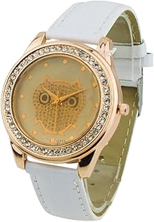 Damen Mädchen Champagne Analog Owl -Strass Quarz-Armbanduhr Armbanduhr Uhr Weiß