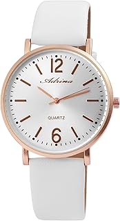 Damenuhr Silber Weiß Rosègold Analog Quarz Leder Armbanduhr