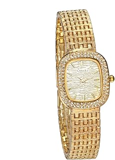 Damenuhr Analog Quarz 30M wasserdichte Armbanduhr Einzigartige Lässige Metall-Armband Frauen Uhren mit Rechteckige Strass Lünette, Gold/Siber