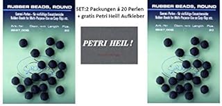 Jenzi Set: 2 Packungen (2X 20 Stück) Gummiperlen 6mm Rubber Beads+ gratis Petri Heil! Aufkleber