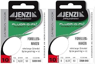 Set: 2 Packungen JENZI gebundene Forellenhaken (12 Stück) an Fluoro-Carbon Schnur, Hakengröße 10 + gratis Petri Heill! Aufkleber