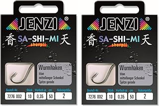 Set # 2 Packungen ( 20 Stück ) Wurmhaken von Jenzi , fertig gebunden, Hakengröße 2, 50 cm +gratis Petri Heil! Aufkleber