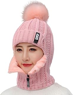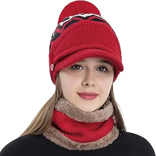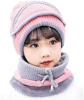 Generic Damen Wintermütze Schal Set,Warm Weichem Innenfutter Strickmütze und Schal mit Fleecefutter,Winter Wärme Beanie Mütze Strickschal Set,Schlauchschal Hüte Mützen mit Kunstpelz Bommel Pom