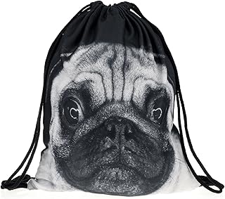 Herren Damen Unisex Schulter Rucksack-String Tasche Schule Kordelzug Rucksack Tasche Gym Handtasche Travel Mops Hund