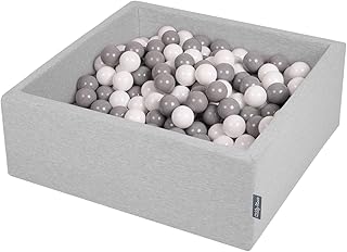 KiddyMoon Bällebad 90X30cm/200 Bälle ∅ 7Cm Bällepool Mit Bunten Bällen Für Babys Kinder Quadrat, Hellgrau:Weiß/Grau